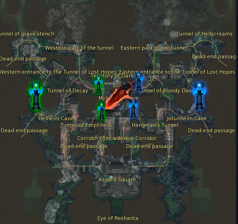 Mob location - Midgard Square. Towers of Reflections have also been installed for each race.